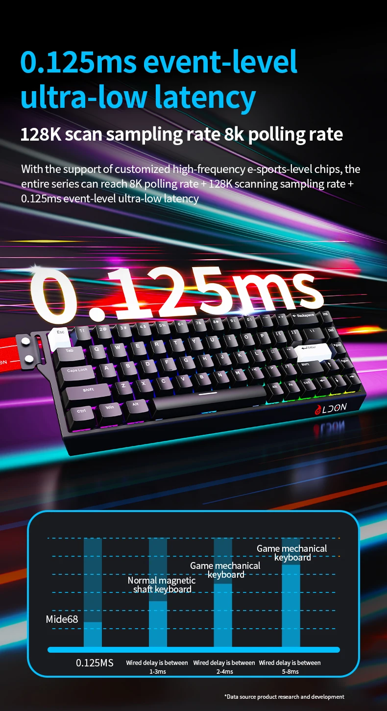 LDON Mide 68 8000Hz Magnetic Switch Gaming Keyboard, Wired USB RGB 68Keys Neon Light for PC E-sports