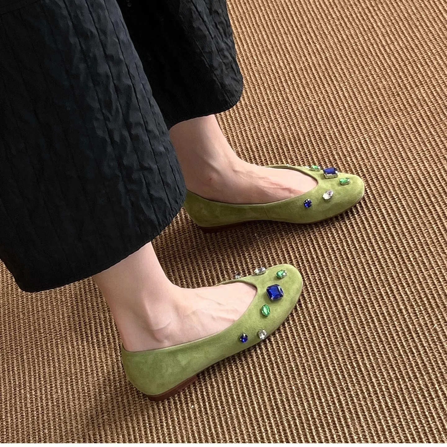 Luxury Colorful Gemstone Flats Women Comfortable Round Toe Shallow Suede Loafers for Ladies Elegant Brand Designer Casual Shoes