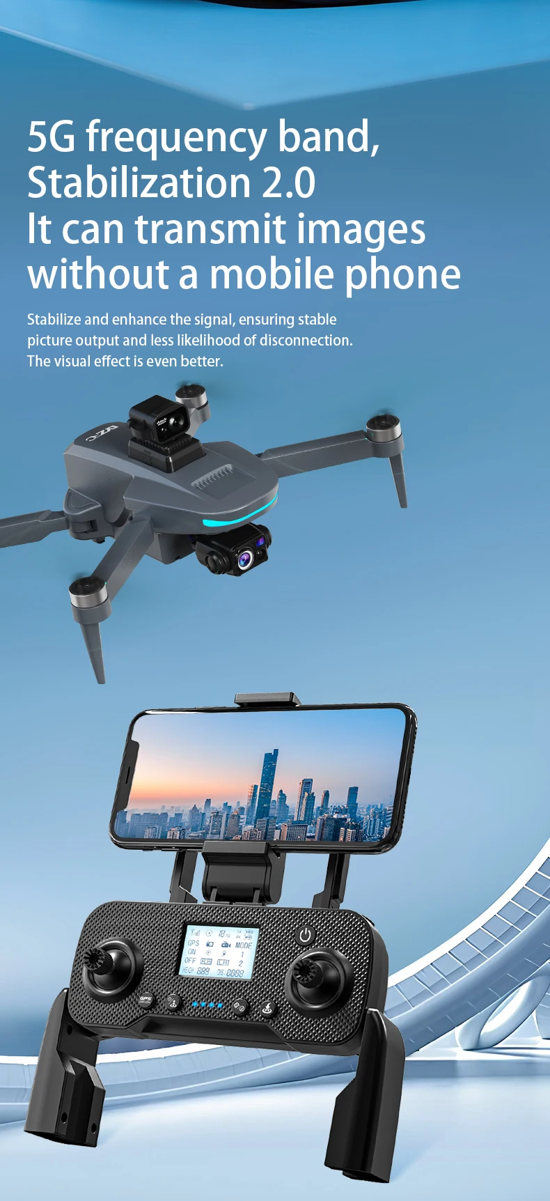 4. GPS Assisted Flight. Provides you with accurate positioning details of your drone.The drone will automatically return to home precisely when its battery is low or the signal is weak when flying out of range, never worrying about losing the drone.
