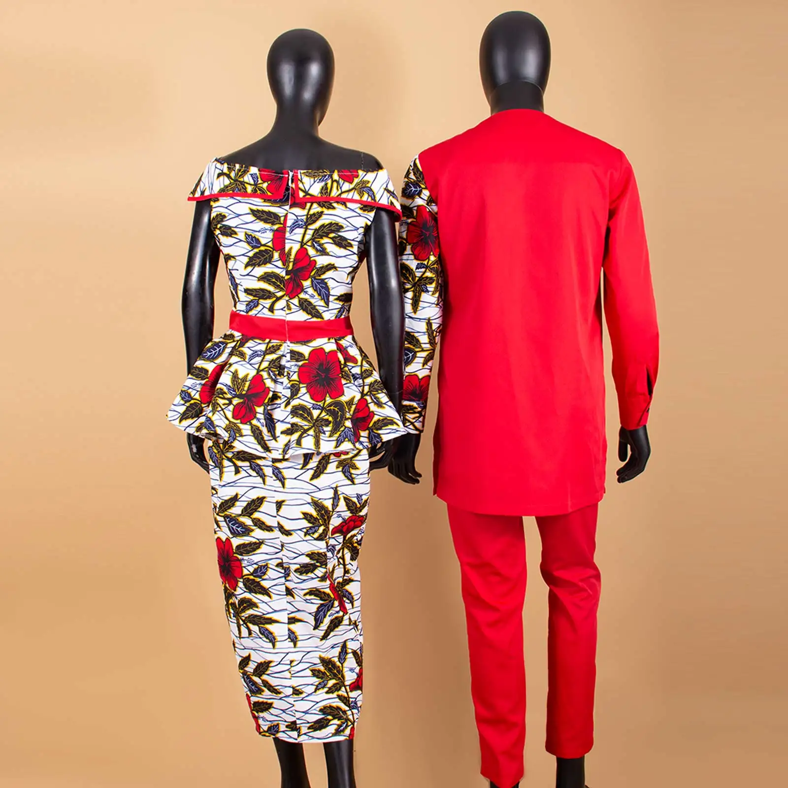 Matching Couple Outfits Men Shirts and Pants Sets Dashiki African Dresses for Women Top and Split Skirts for Wedding Y23C006
