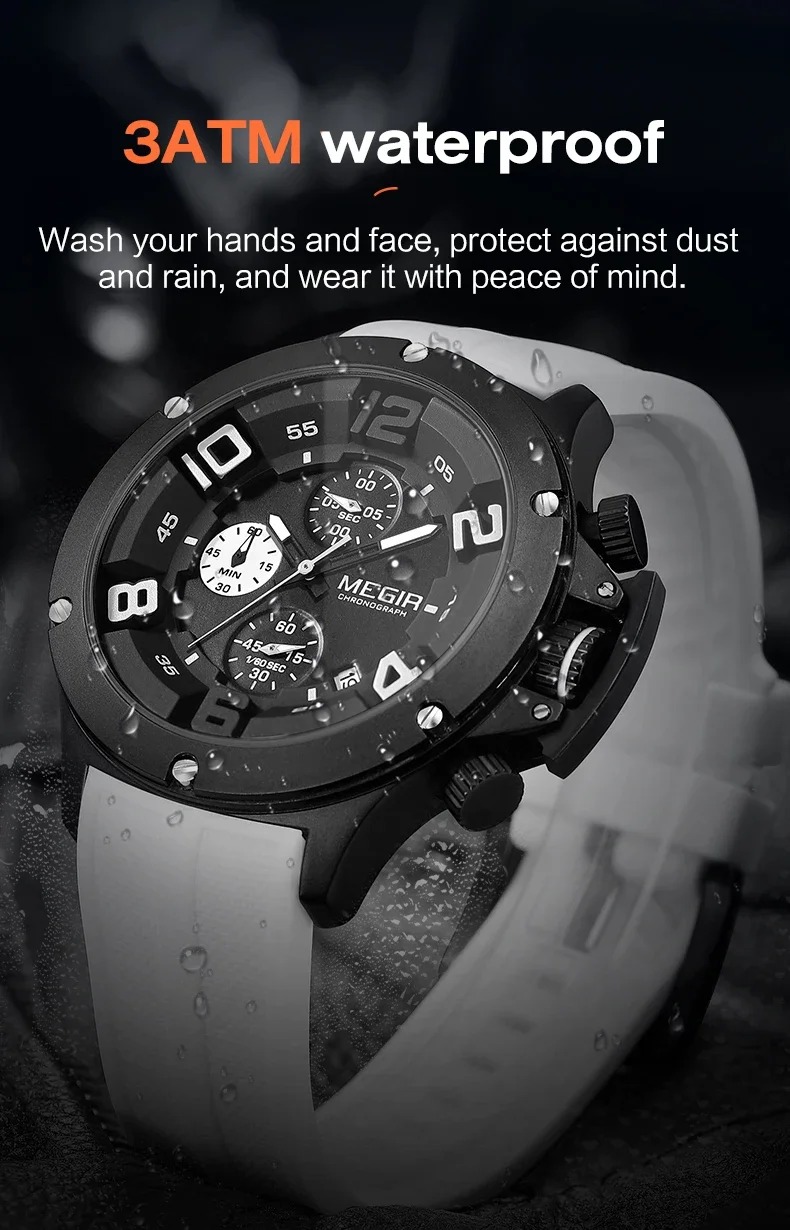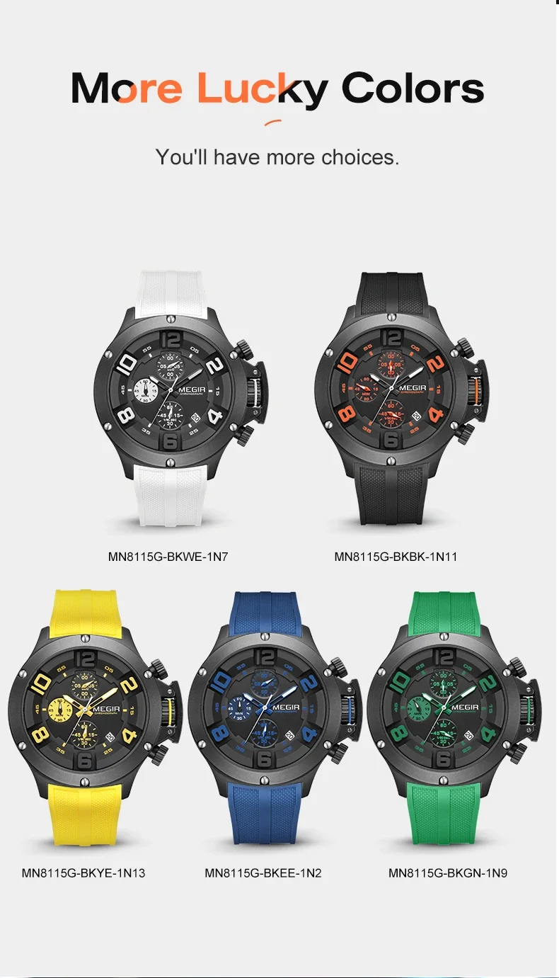 MEGIR 2025 Fashion Men's Silicone Strap Watch Luxury Calendar Chronograph Quartz Wristwatches Military Sport Luminous Clock Male