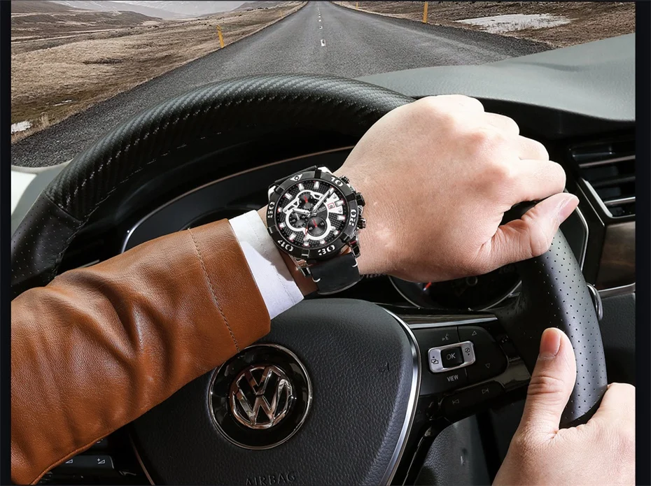 MEGIR Luxury Leather Strap Men Quartz Watches Chronograph Waterproof Luminous Date Sports Military Wristwatch Clock Reloj Hombre