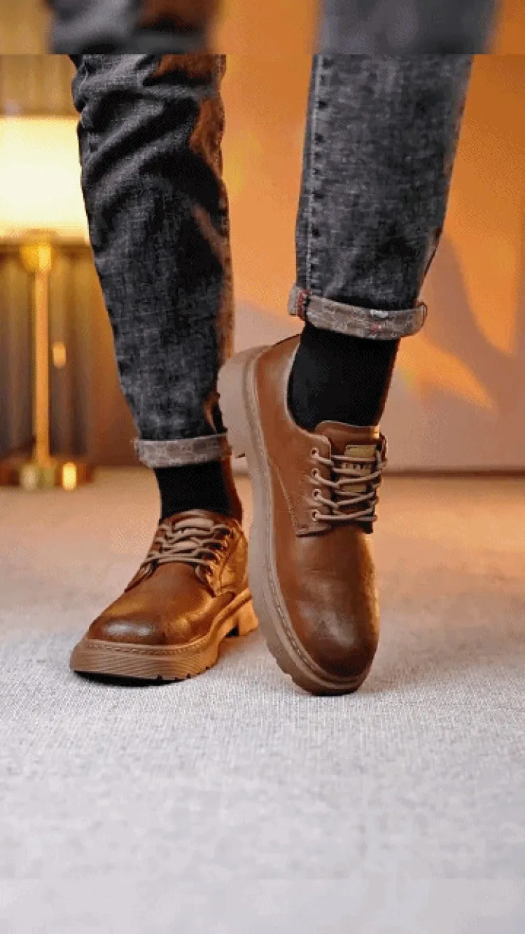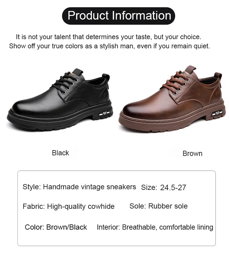 Men's Outdoor Casual Leather Shoes Dad Big Head Leather Shoes Lace Free Retro Men's Shoes Antiskid Outdoor Oxford Work Shoes