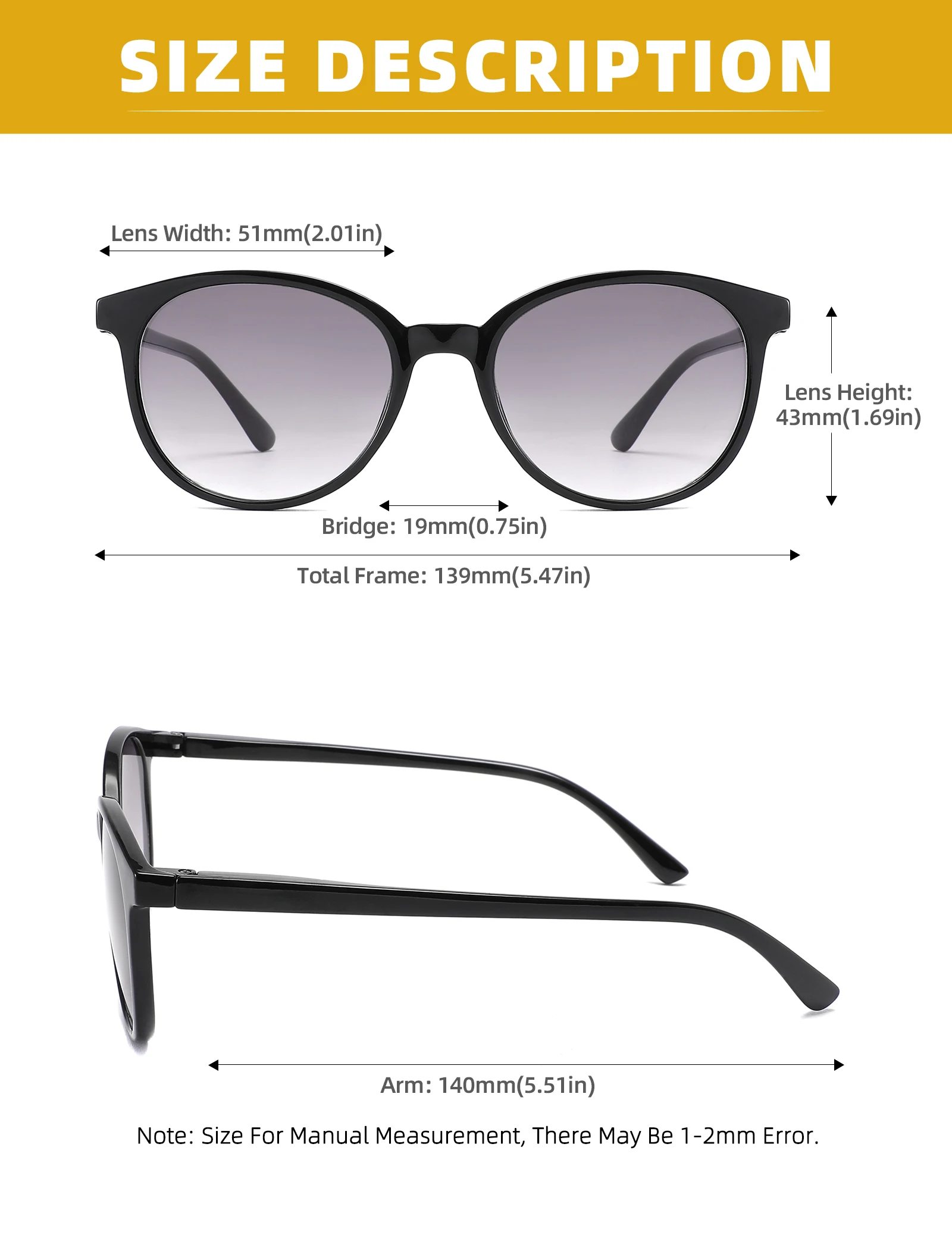 MODFANS Oversized Reading Glasses For Women and men,Classic Round Sunglasses Readers Frame with Spring Hinge +0.5 ~ +4.0