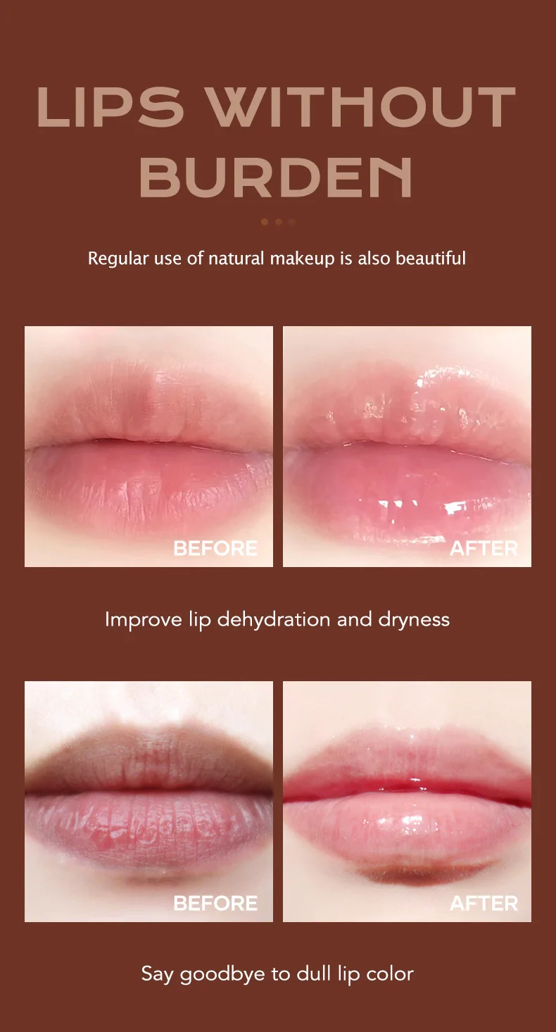 ♦Lips are exposed all the time, and they are easily exposed to environmental hazards and lose their original moisture, causing dryness and cracking.