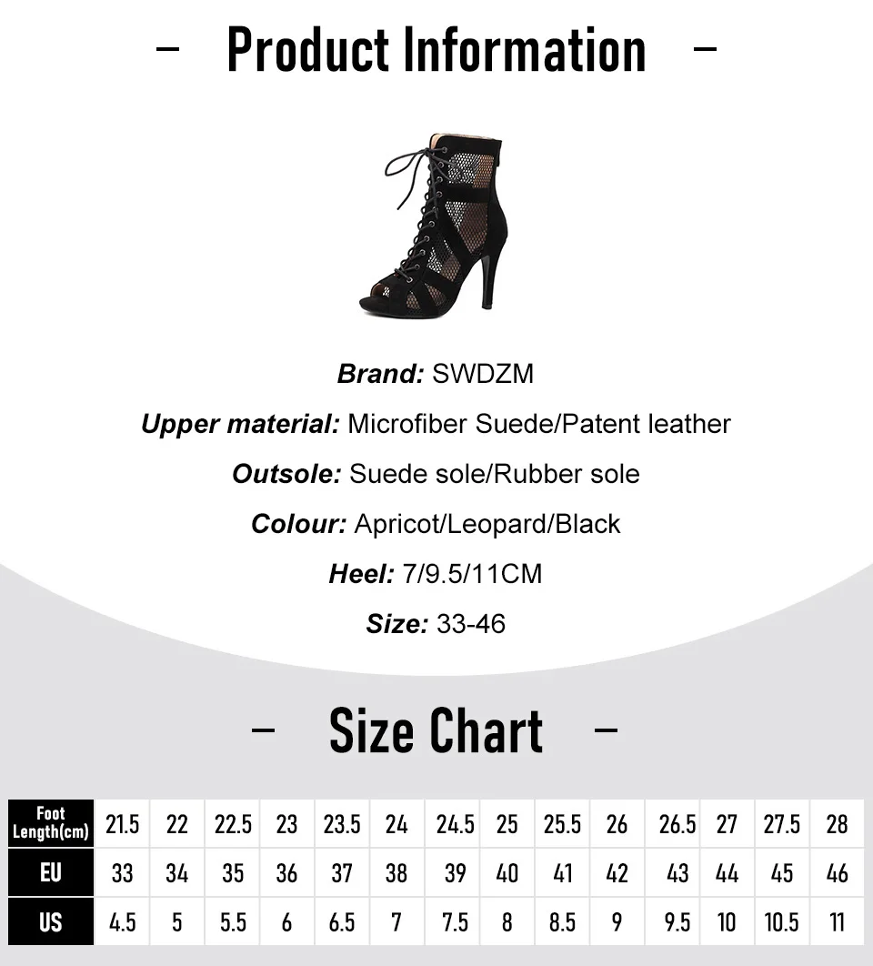 SWDZM 2023 New Sexy Women Ballroom Latin Dance Shoes Black High Heels Salsa Dance Sandals Mesh Boots Woman Thin Heel Plus Size 34-46 Sexy stilettos Rubber sole/suede sole Heel 7/9.5/11CM