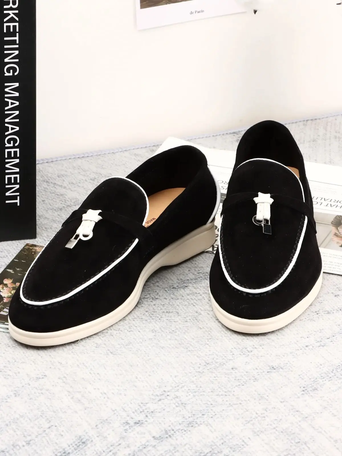 Women's loafers, leather white edged flat shoes, casual brand men's shoes, luxury designer boutique shoes