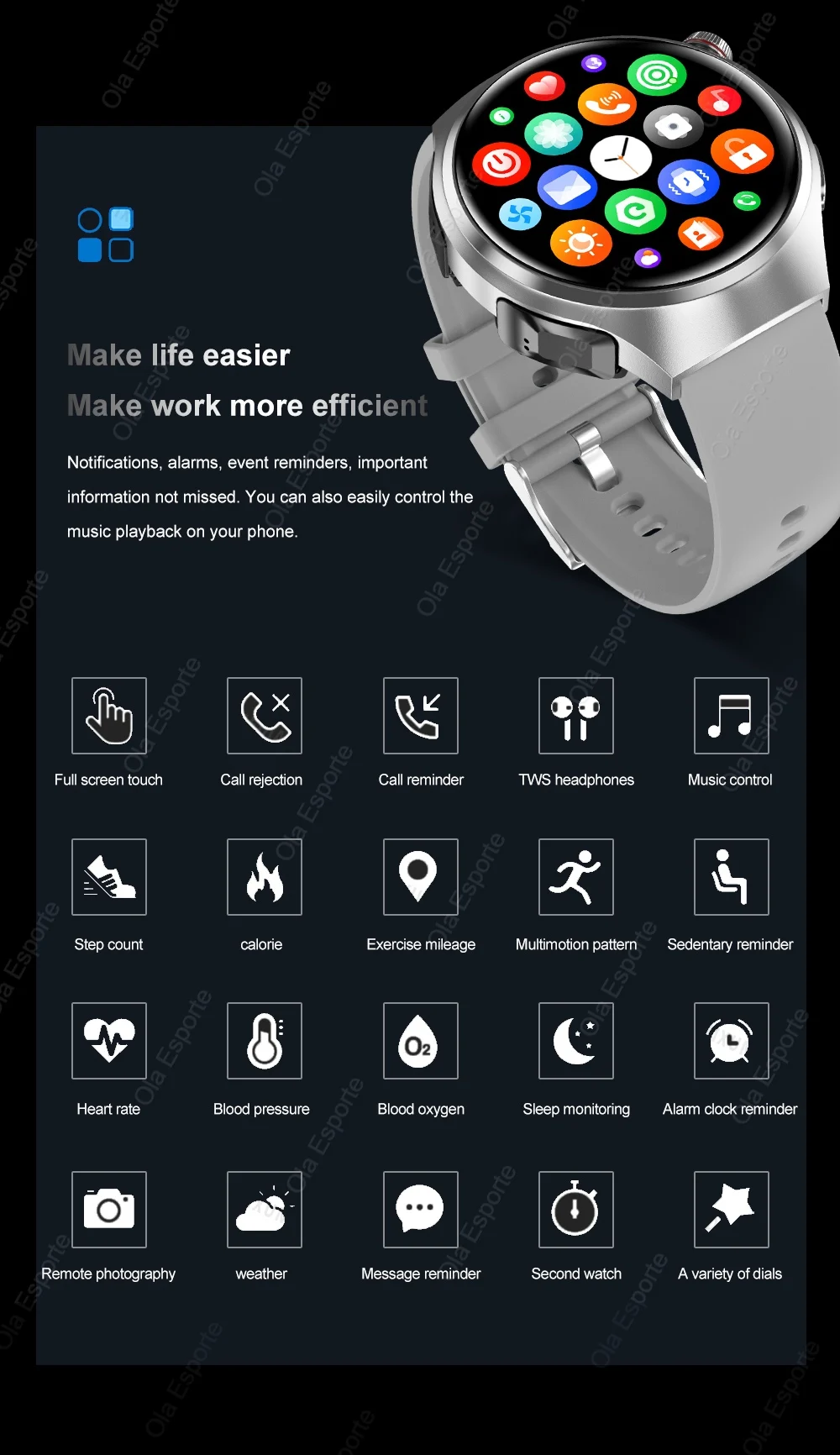 * 2 in 1 multi-function Ola esporte smart watch and wirelessly bt headset.