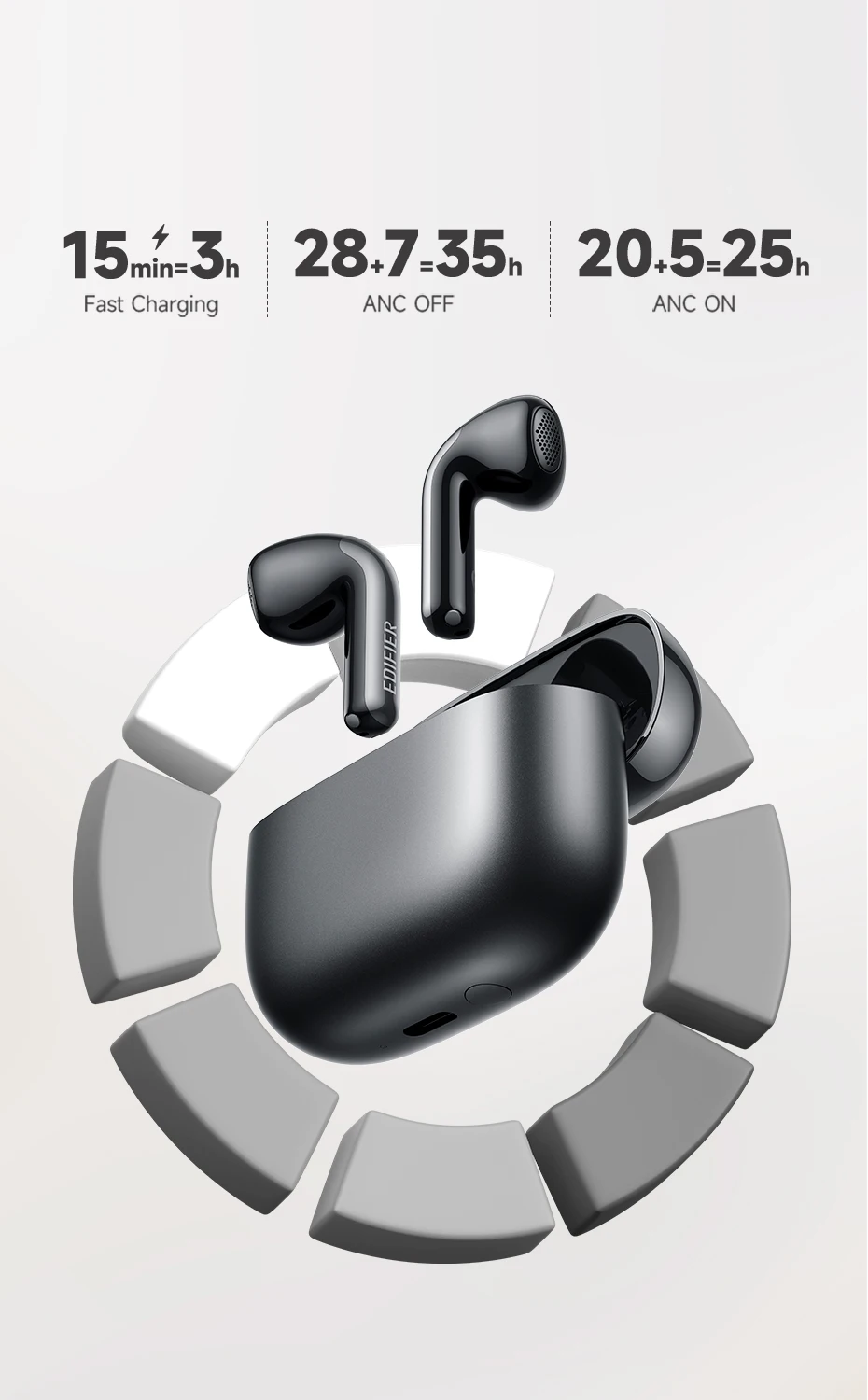 A single charge delivers 7 hours of use, and with the charging case, you’ll get up to 35 hours of total battery life—less charging, more sustainable listening.