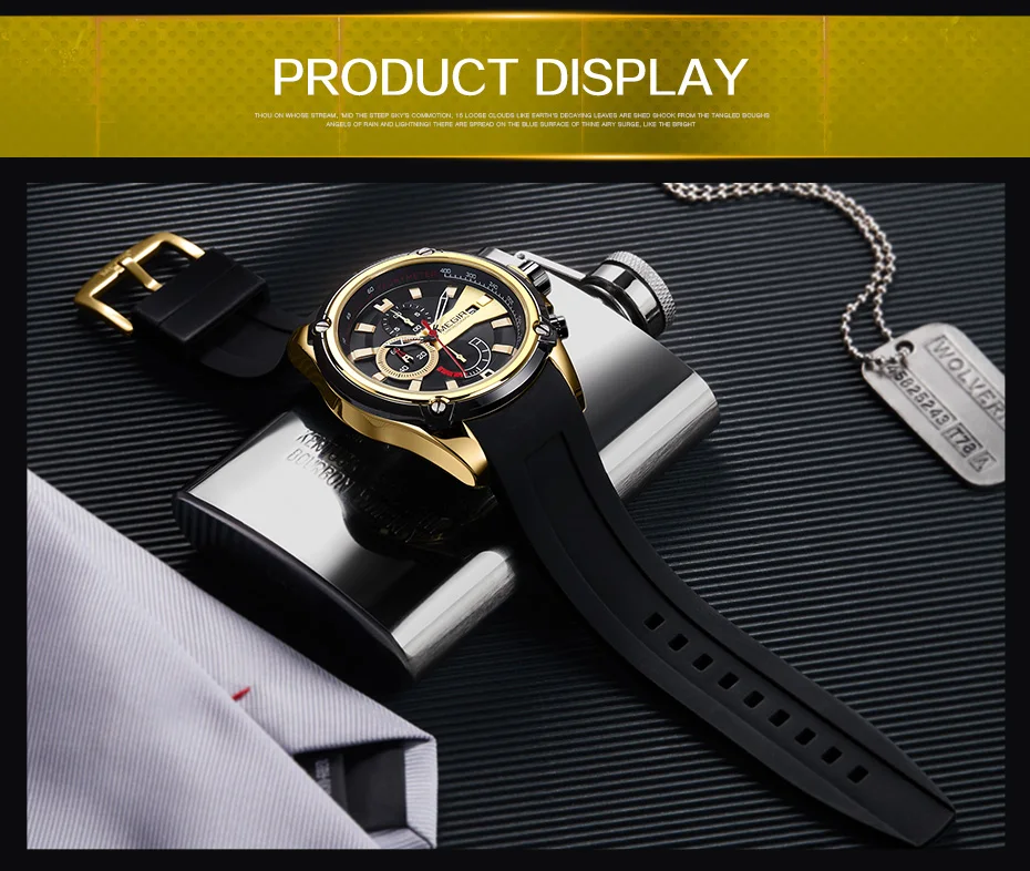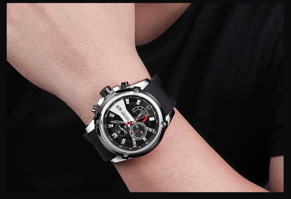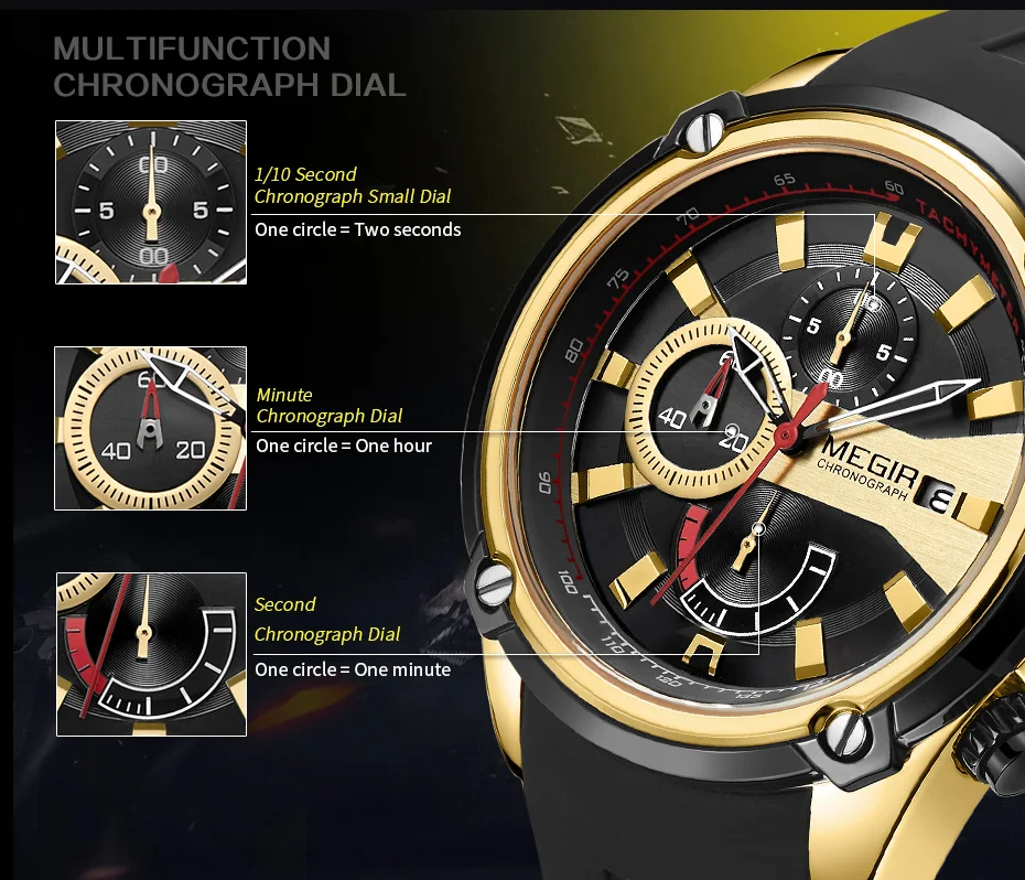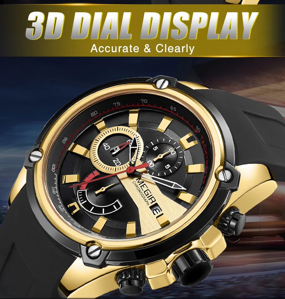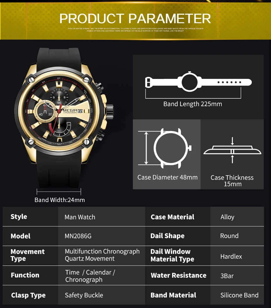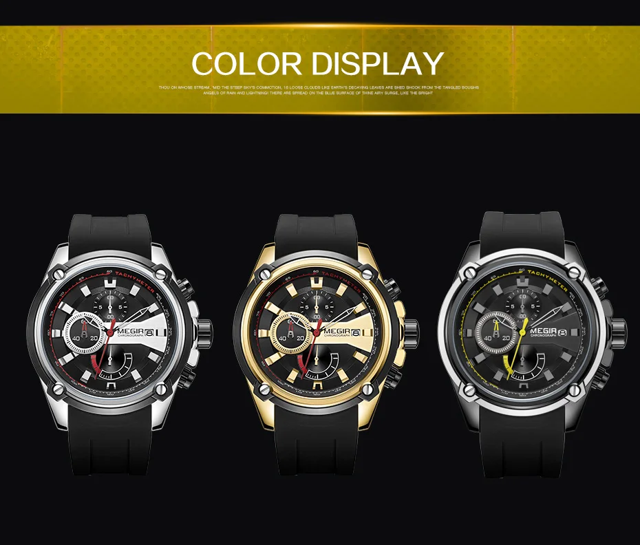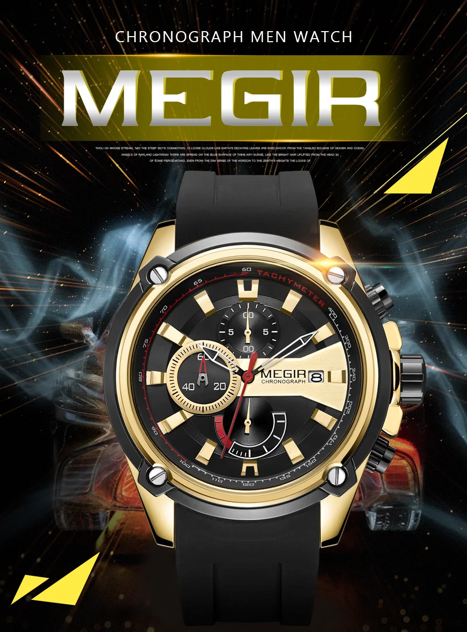 MEGIR Chronograph Luxury Brand Men Sports Watches Silicone Strap Quartz Casual Wristwatch Waterproof Calendar Reloj Hombre 2086