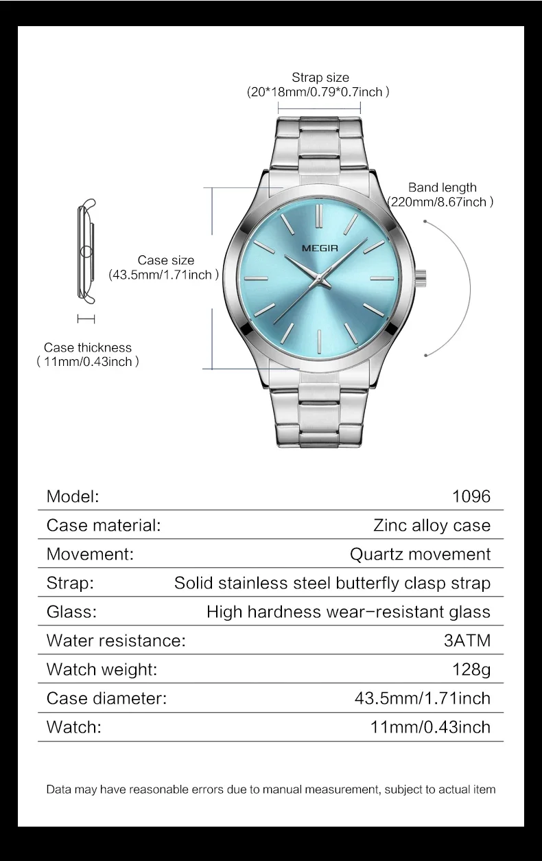 MEGIR Luxury Simple Quartz Men's Watch Business Stainless Steel Bracelet Luminous Watches Man High-Quality Clock reloj hombre