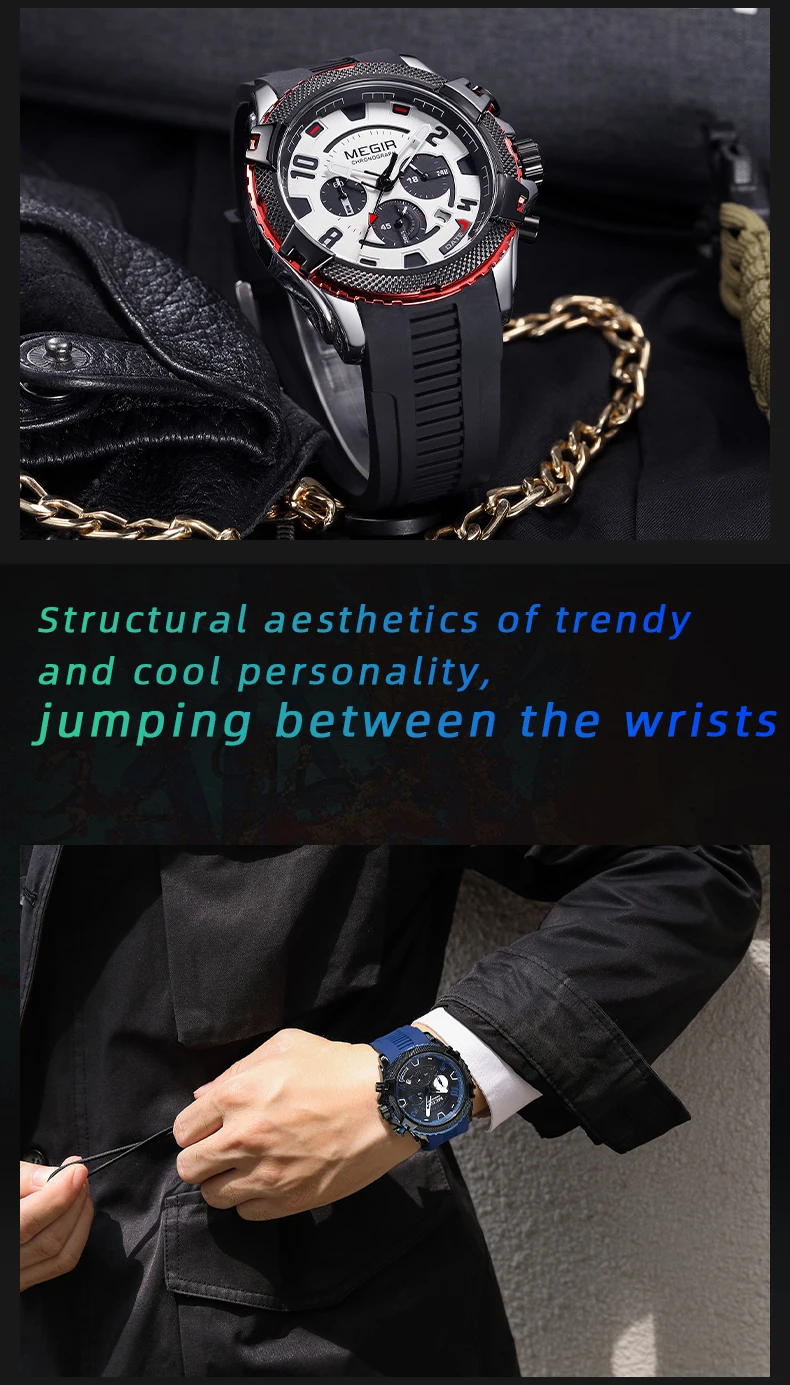 MEGIR Men's Watches Fashion Sport Chronograph Waterproof Calendar Military Quartz Wristwatch Clock 24-hour Reloj Hombre 2200