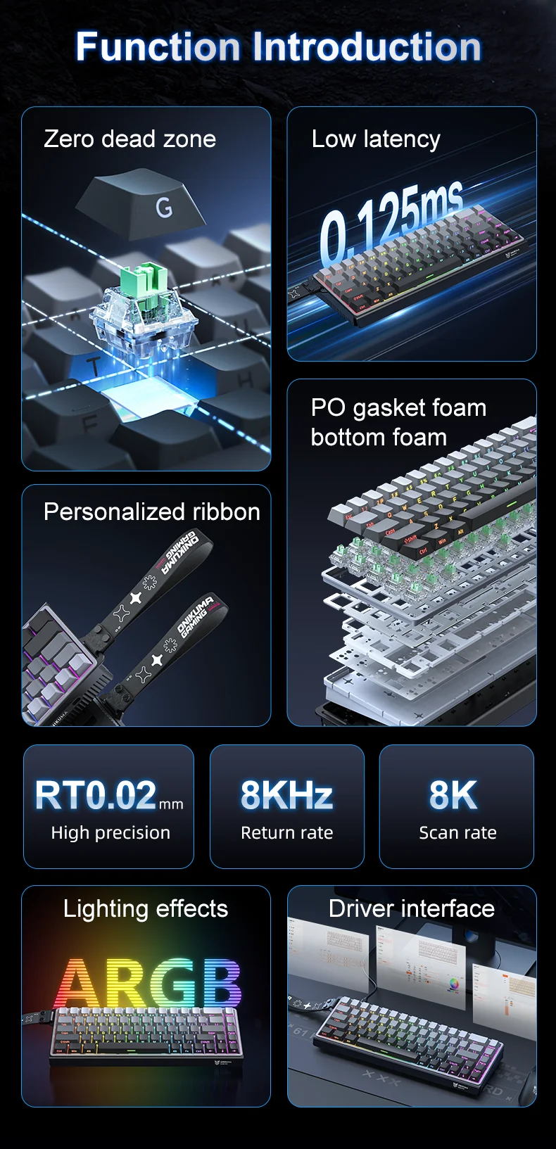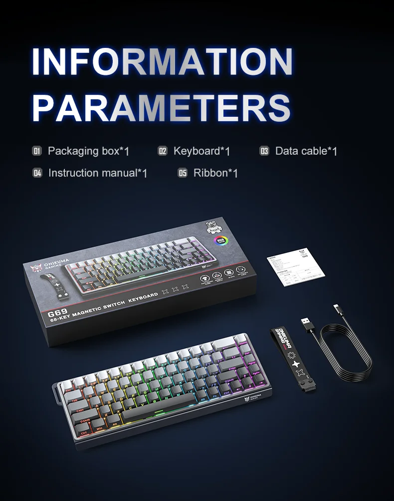 ONIKUMA NEW Magnetic Gaming Keyboards Wired 60% 0.01mm Rapid Trigg 8000Hz SOCD/Rs 0.125ms 128K Rate G69