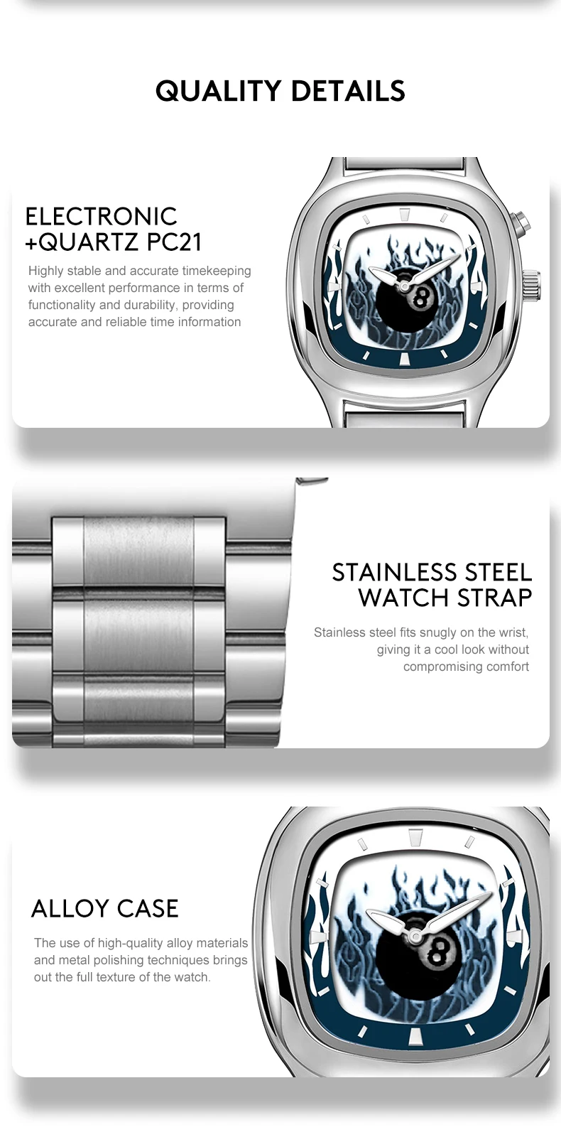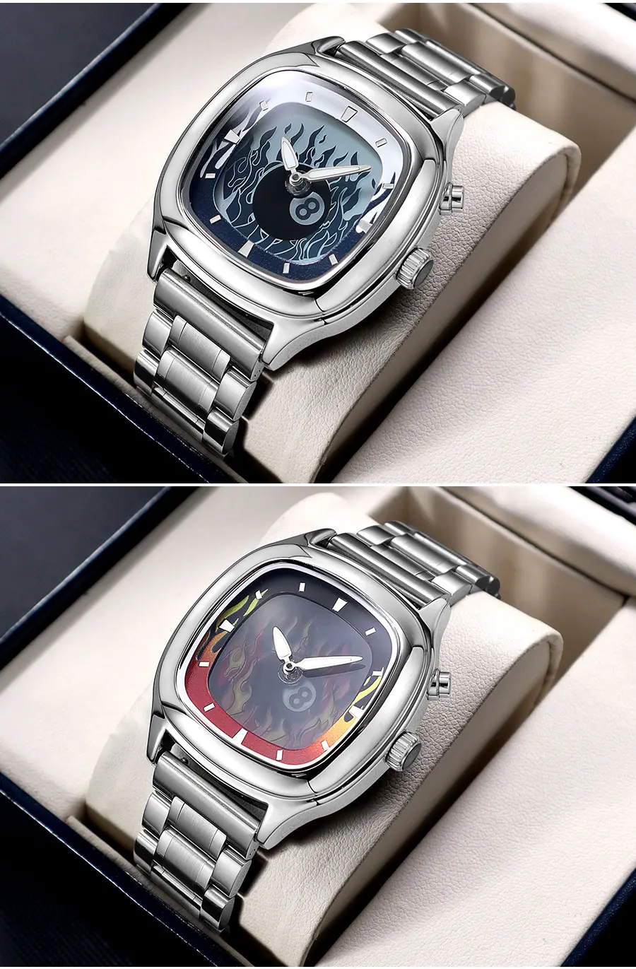 Retro Millennium Watch for Men with Dynamic Flame Dial Unique Creative Quartz Wristwatch with Stainless Steel Strap Square Case
