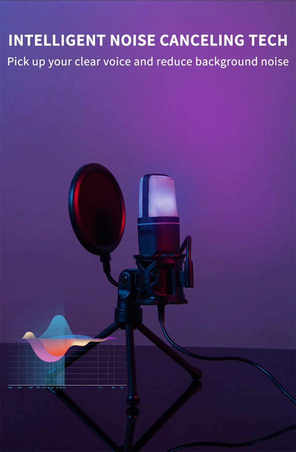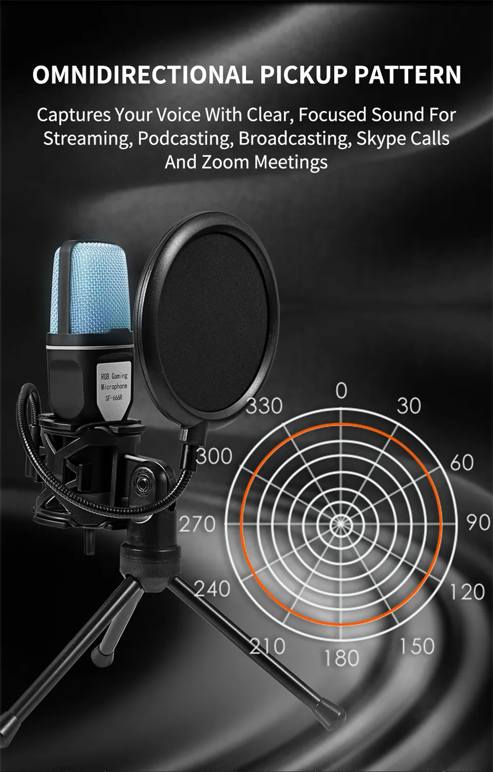 • RGB Lighting :The microphone comes with RGB lighting, adding a touch of style to your gaming or streaming setup.
